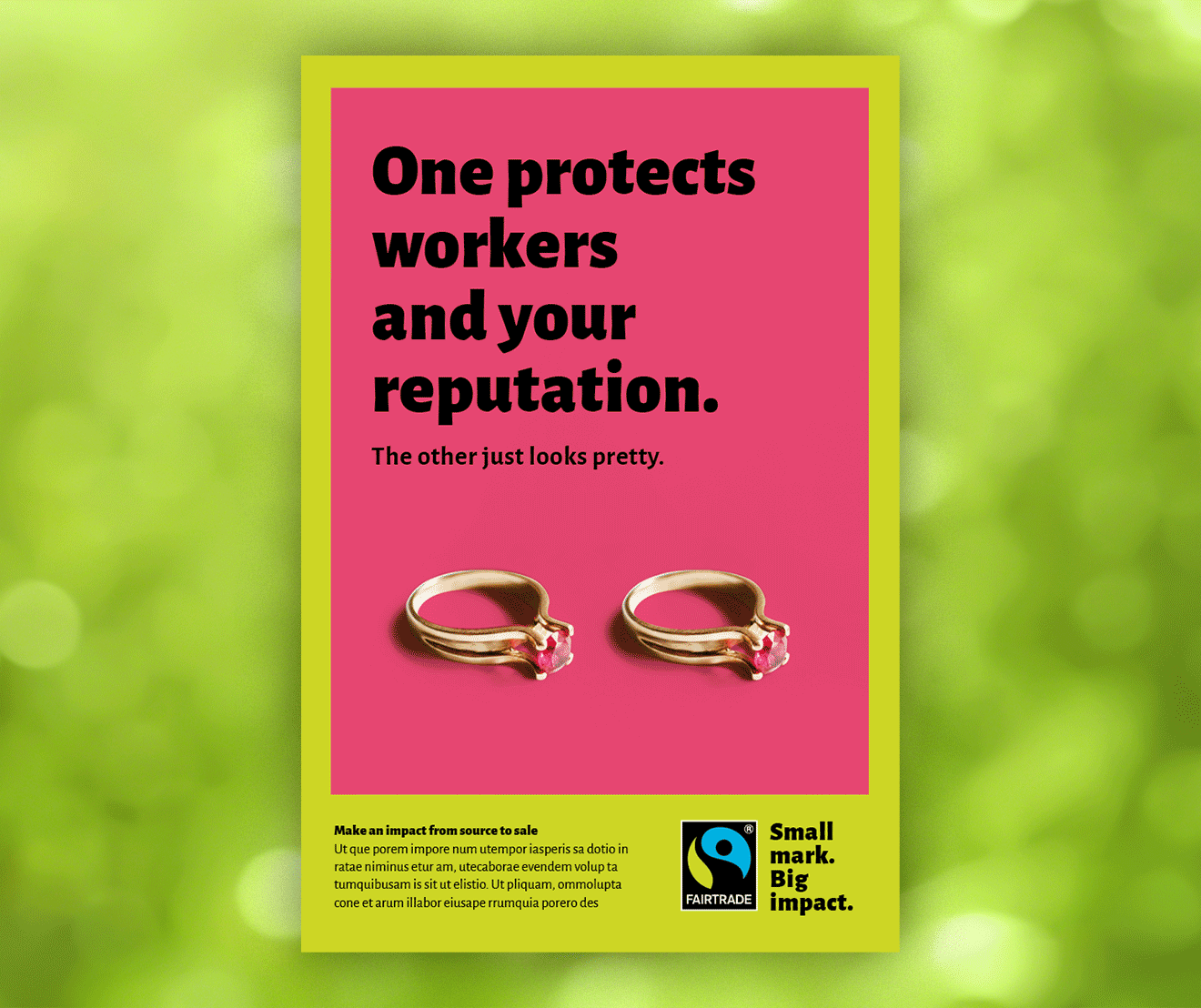 With the concept “Small mark. Big impact.” we show that the small label on the final product stands for so much more: a whole Fairtrade system made up of initiatives, standards, and local engagement. To achieve this, we executed a multi-layered campaign consisting of concept-driven ads, case studies from production countries showcasing people whose working conditions improved through Fairtrade’s engagement, and ads featuring companies that benefit from cooperating with Fairtrade. This resulted in showcasing all the facets of the initiative in a bold, contemporary, and emotionally engaging way.