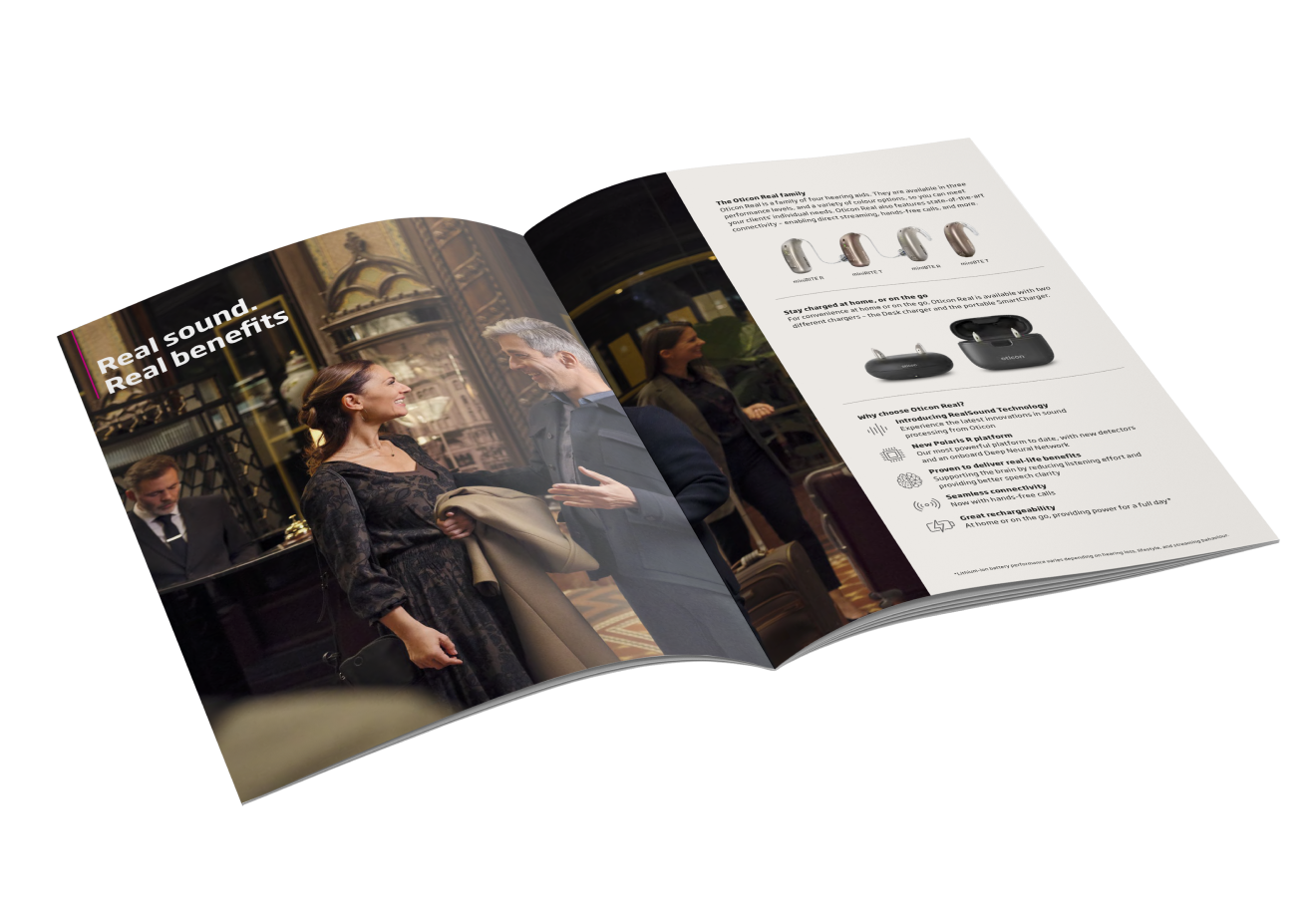 With Oticon Real, Oticon had taken the next step in hearing aid technology, developing a hearing aid that opens up to all relevant sounds but also revolutionises how a hearing aid handles potentially disturbing sounds. The task was to communicate the value of the new product in a way that hearing care professionals and hearing aid users understood.