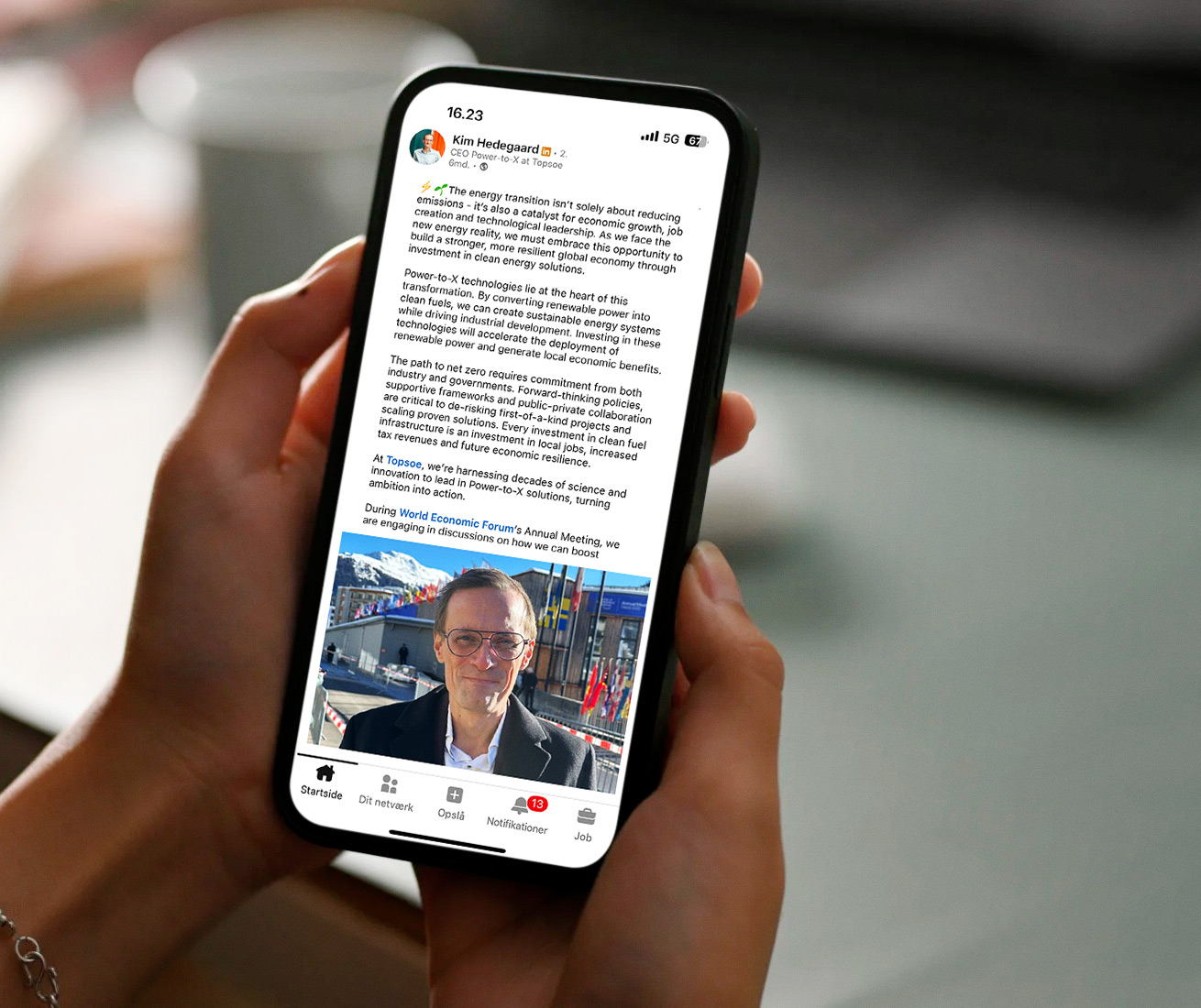 As an extra layer to the activation, Topsoe chose its four Senior Leadership Team members – who also participated physically at Davos – to act as Thought Leaders with each their personalised perspective and content on one of the four themes. They were filmed on-site for video content and they posted a written perspective from their personal LinkedIn profile, which was promoted with paid media spend towards a defined and relevant audience.