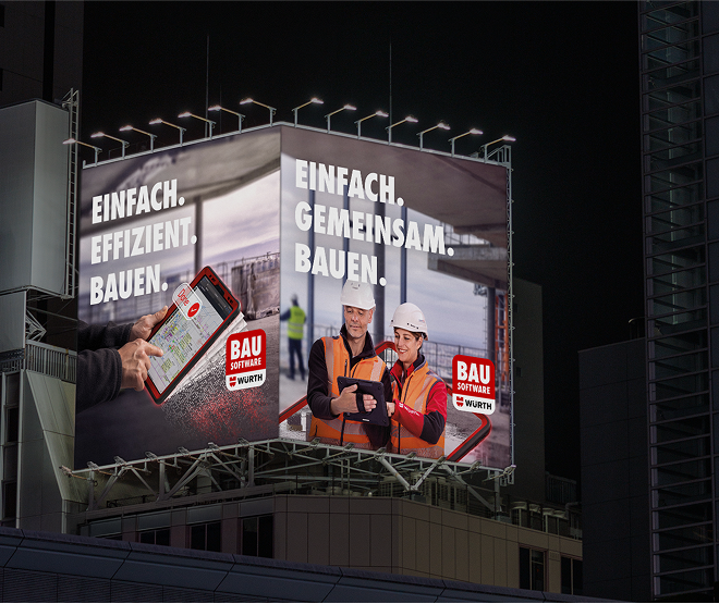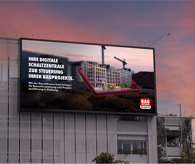 The challenge was to communicate the benefits of the software without relying on generic construction site images, a common practice in the industry. Our solution stood out by visually integrating digital elements into real-world construction settings, making the advantages of Würth’s construction software instantly clear. The campaign was designed with two goals in mind: attracting new customers in the market while also increasing awareness within the Würth Group itself. The campaign was key to strengthening internal understanding and gaining broader organizational support.